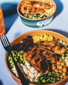 Chez Flameo, vous pourrez créer votre bol, votre salade ou votre poutine selon vos goûts, avec des ingrédients frais, des sauces signatures et du poulet grillé à la flamme sous vos yeux!